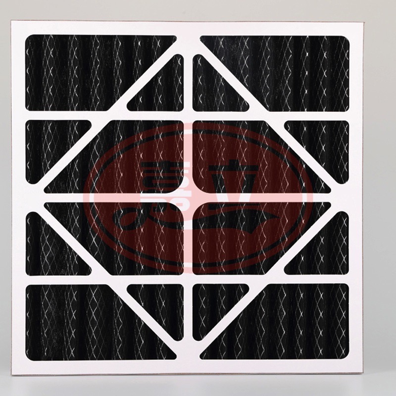 纸框初效过滤器滤料:是以折叠形式装入高强度摸且硬纸板内,迎风面积增大。流入的空气中的尘埃粒子被过滤材料有效阻挡褶与褶之间。洁净空气从另一面均匀流出,因此气流通过滤器是平缓和均匀的。视过滤材料不同,它所阻挡的粒径从0.5μm到5μm而不同,过滤效率也不同。